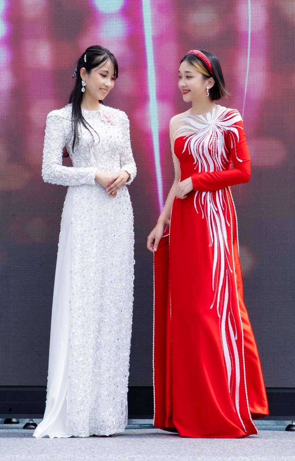 Hình ảnh áo dài của nhà thiết kế Minh Châu trên đất Nhật.